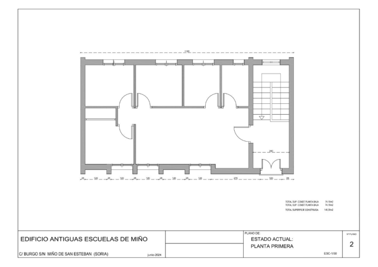 Se alquila vivienda municipal ubicada en las antiguas escuelas de Miño de San Esteban, Soria. Edificio de los años 60, originalmente utilizado como escuela y vivienda del maestro. Superficie total de 148,30 m² en una parcela de 355,00 m² con almacén. Distribución en dos plantas con cocina, baño, tres habitaciones y salón-comedor.La vivienda cuenta con suelos de terrazo en todas las estancias, paredes con acabado de pintura plástica y techos enfoscados de yeso pintados en blanco. Las puertas interiores son de madera, manteniendo un estilo tradicional.Las instalaciones incluyen agua caliente sanitaria mediante termo de gas butano, estufa de leña y radiadores eléctricos para la calefacción, y ventilación natural en todas las estancias. Reformas recientes en fachadas y carpintería exterior con ventanas de PVC y doble cristal para mejorar la eficiencia energética.Equipamiento básico, con cocina y baños en buen estado. Es una vivienda ideal para quienes buscan la tranquilidad de un entorno rural y la comodidad de un hogar con historia y encanto.Referencia Catastral: 001200700VL79G0001JY